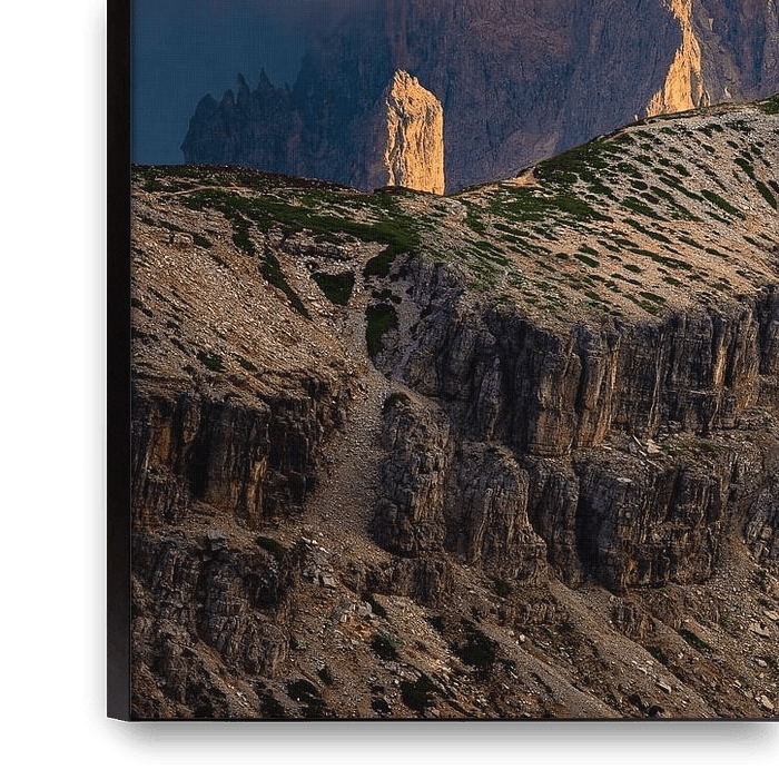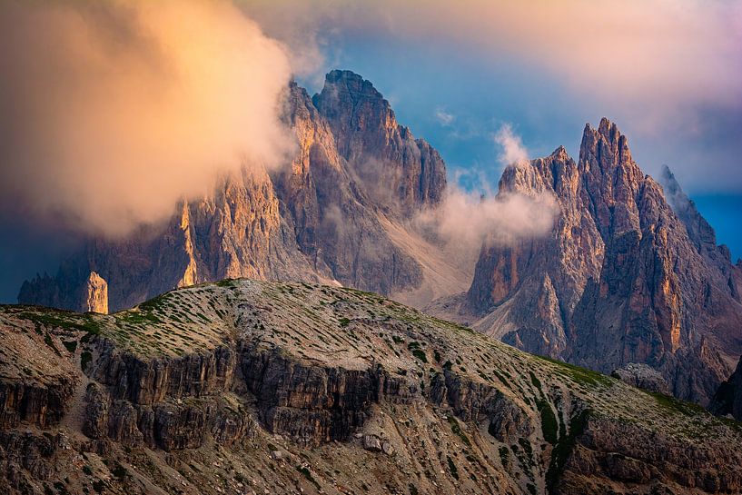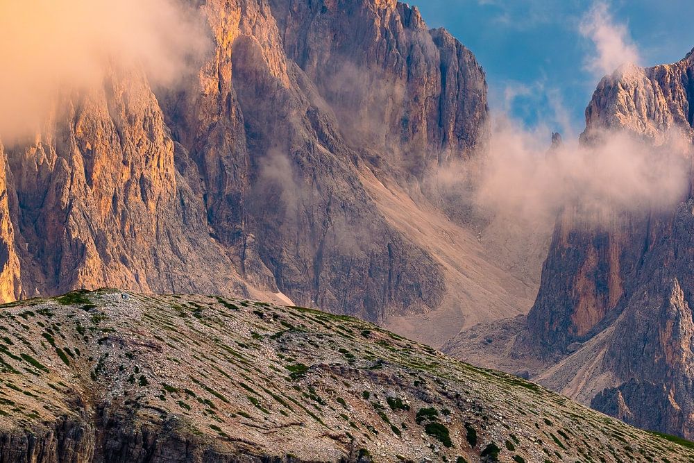 View of the Cadini group in the province of Belluno in the Sexten Dolomites in the evening light