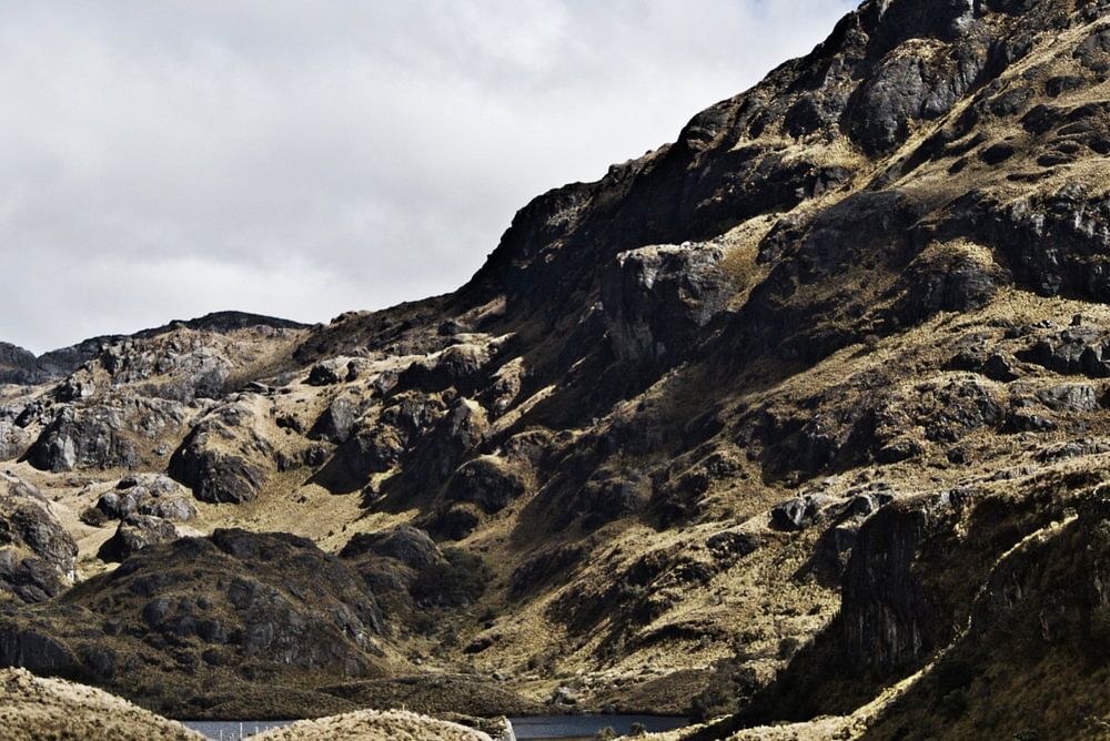 Mountains, hills and a lake in the Cajas National Park in Ecuador.