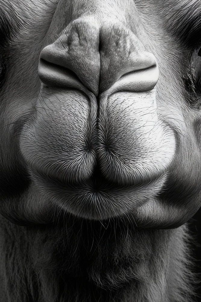 A powerful portrait with striking features and an expression full of character. The detailed depiction of the camel captures the viewer's curiosity in a friendly way. Ideal for the living room, where it can act as a conversation starter and add a touch of the exotic. A real eye-catcher in any room!