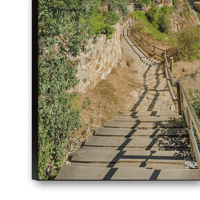 About "Camí de Ronda overlooking the old city wall and Cap de Tossa, Tossa de Mar,"