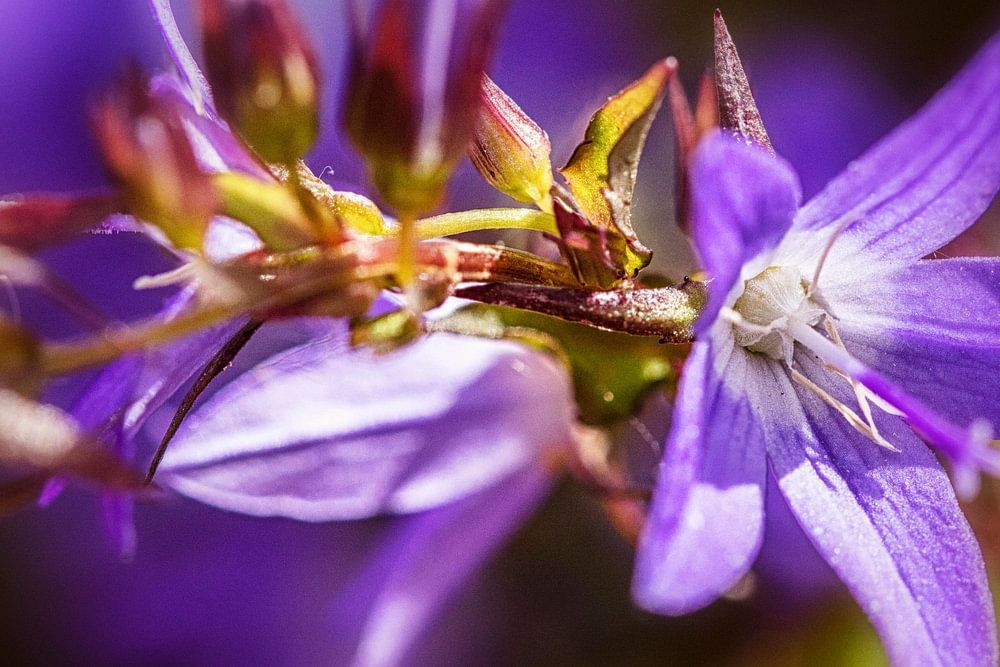 Close-up of the purple flower of the Campanula