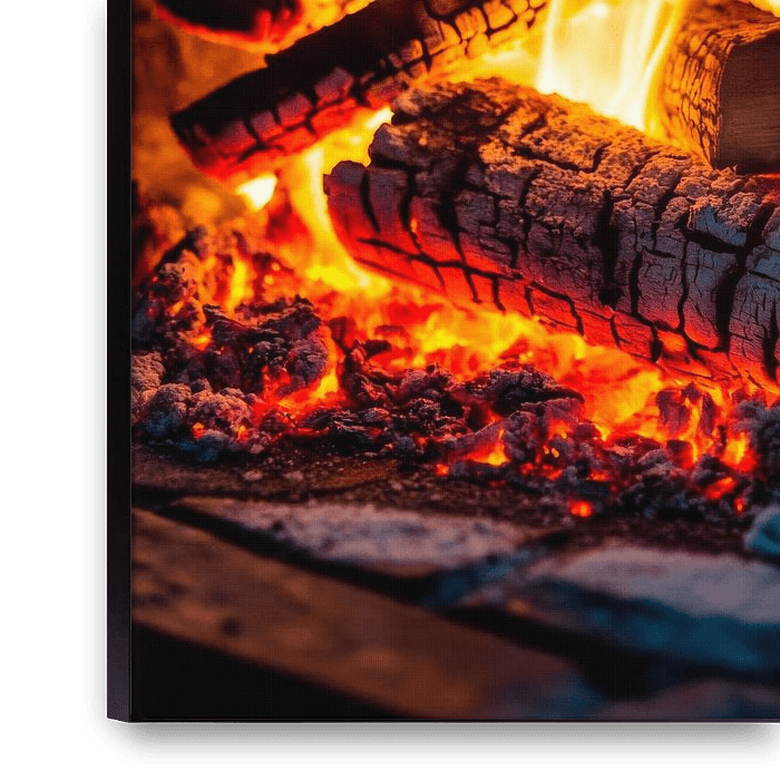 Dancing flames rise in mesmerising spirals and cast a warm, lambent light on the blackened logs. Glowing coals glow in vivid orange and red, while a gentle smoke rises and fills the air with a hint of cosiness. The magic of the fire unfolds in an inviting and mysterious way.