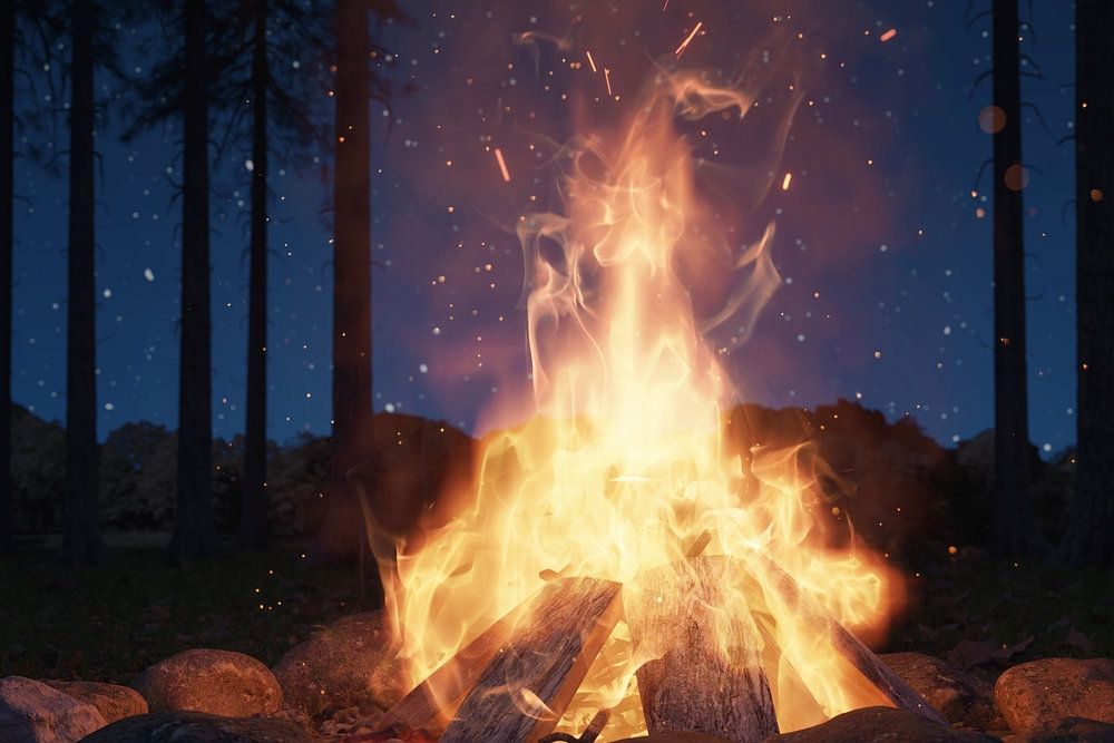 Buy this digital art artwork Campfire in the middle of conifers at night by Besa Art as a reproduction on canvas, ArtFrame, poster and wallpaper, printed on demand in high quality.