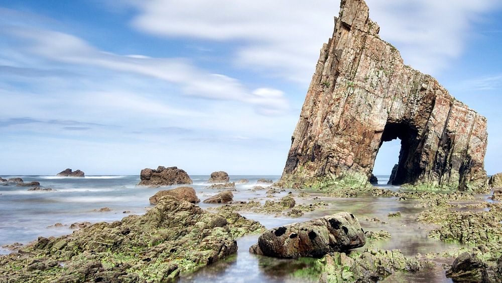 Campiecho Sea Arch at Asturias coastline, Spain, Bay of Biscay