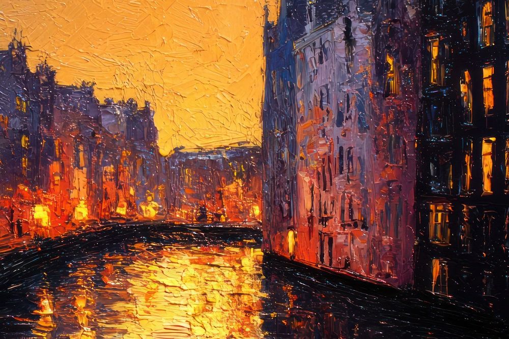 Buy this painting Canal at Sunset by Franka Poulain as a reproduction on canvas, ArtFrame, poster and wallpaper, printed on demand in high quality.