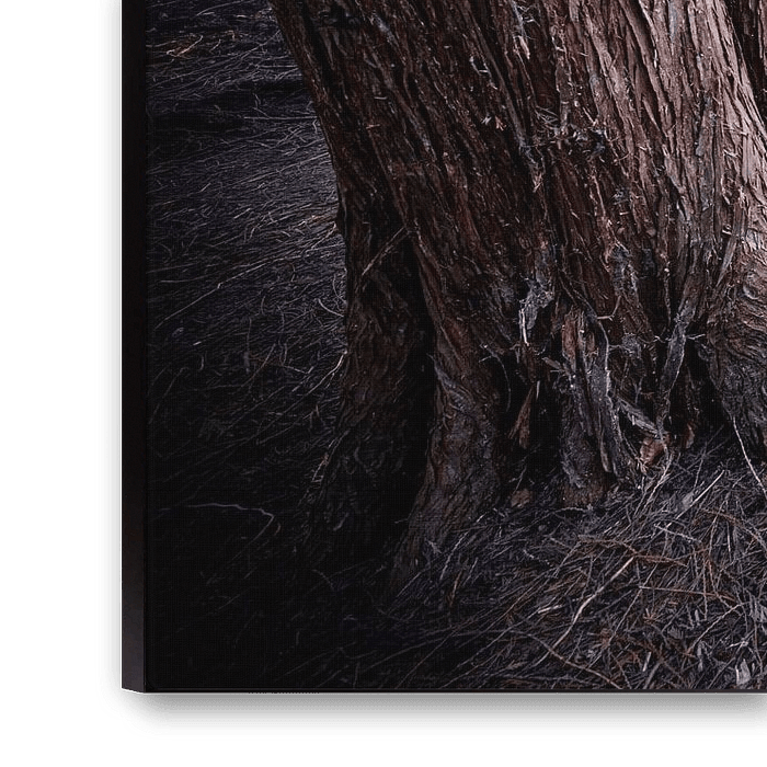 In the early evening, the sun shines through the trees of the Speulderbos near Garderen. The conifers are dead straight and cast long shadows. They have a beautiful structure in their trunks.