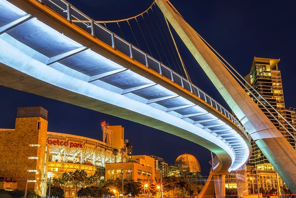 This is the Harbor Drive Pedestrian Bridge in downtown San Diego, California, USA.