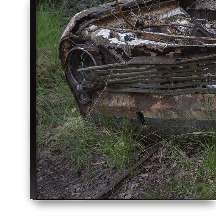Buy the photo Car cemetery in forest in Ryd, Sweden by Joost Adriaanse on canvas, ArtFrame, poster and wallpaper, printed on demand in high quality.