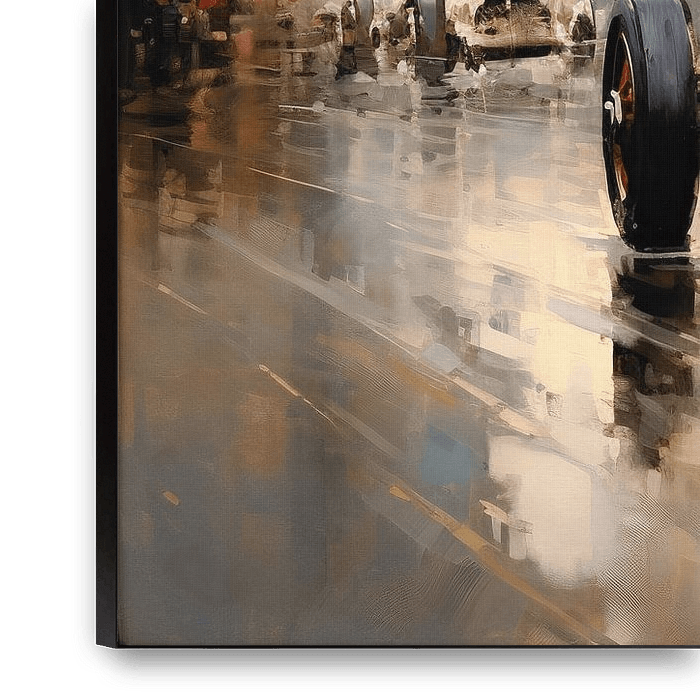 Impressive dynamic motif of a vintage car race that looks like a painting.