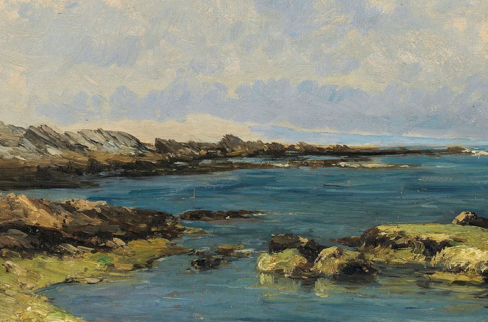 Carlos de Haes-Blue seascape, sea reef landscape, Antique landscape