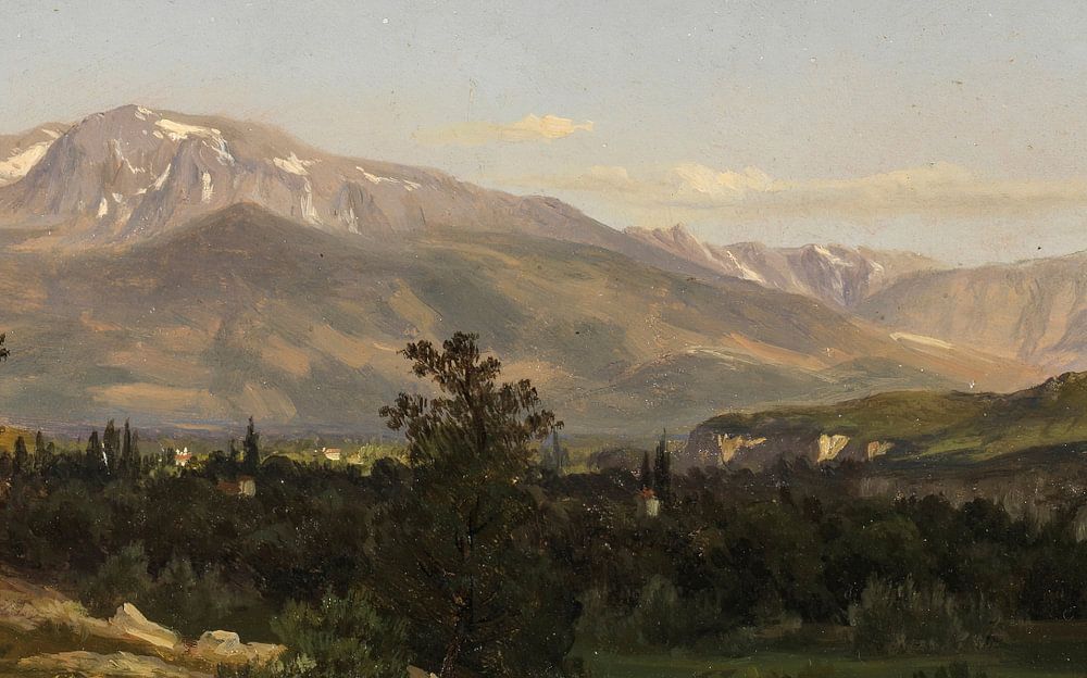 Carlos de Haes-Weg landscape back to the village, rural idyll, Antique landscape