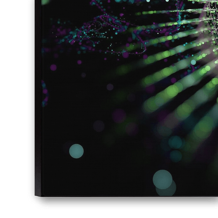 This work shows an abstract composition reminiscent of the movement of a merry-go-round. At the centre is a black circle, from which concentric rings of glowing dots in green, purple and blue spread outwards. The arrangement of the dots creates a visual dynamic that is reminiscent of rotation and rhythmic movement - like a merry-go-round travelling slowly and steadily.