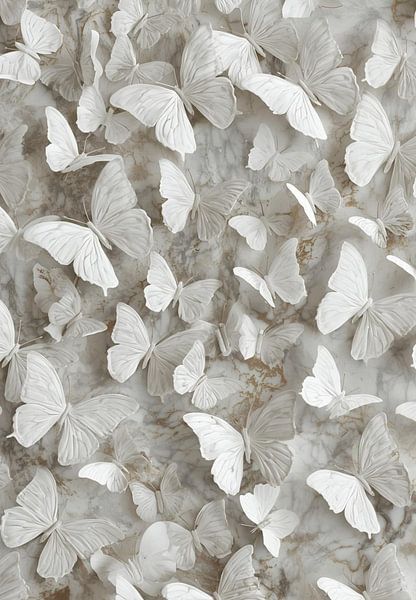 Buy this butterfly art Carrara Marble Butterfly Swarm: Ethereal Stone Aesthetics by Sergej Gello on canvas, ArtFrame, poster and wallpaper, printed on demand in high quality.