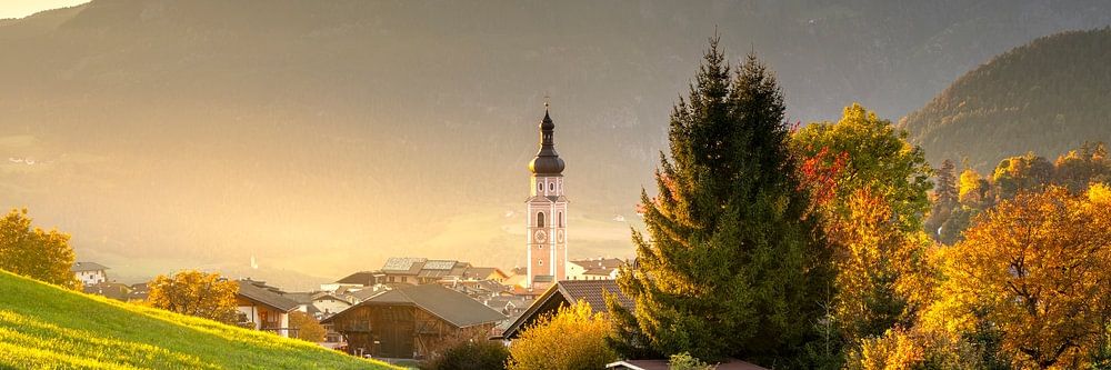 Sunset at the village of Castelrotto in South Tyrol in the Sciliar region in the Dolomites. The village is also known for the band " Kastelruther Spatzen "