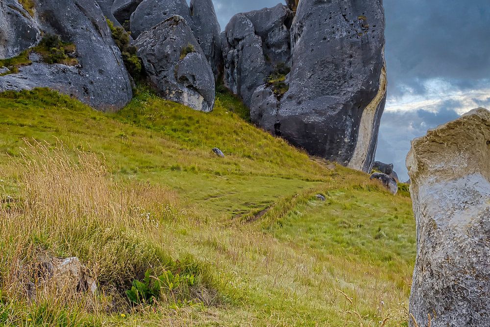 Castle Hill, New Zealand. A sacred place for the Maori. It was a food gathering place for the Maori. This area was part of the route to reach the west coast. Imposing limestone rocks. The rocks are popular with climbers.