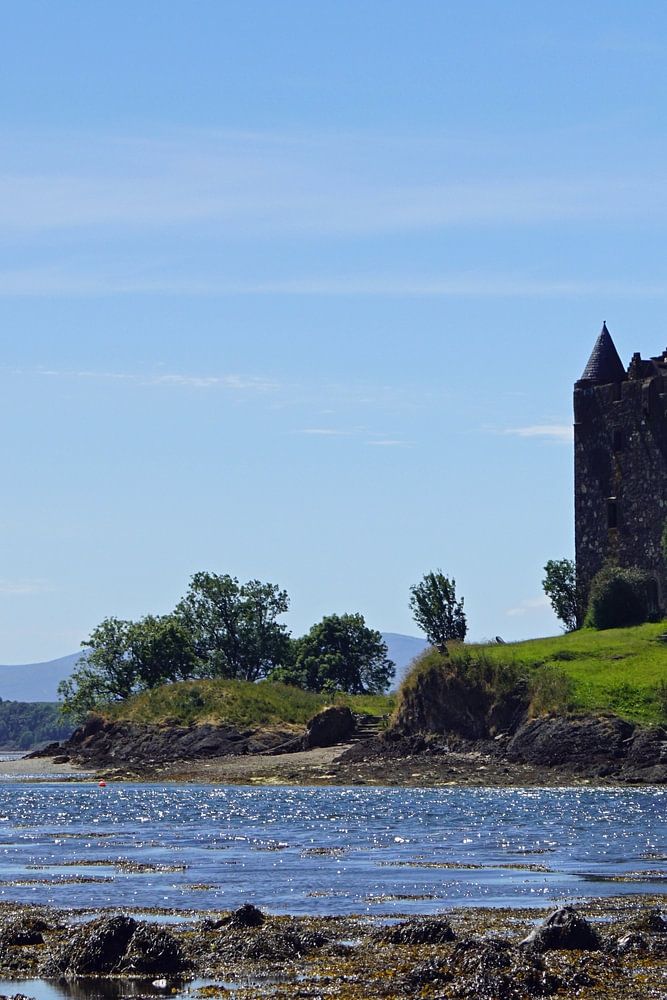 Castle Stalker is a tower house about 2.5 kilometers northeast of Port Appin