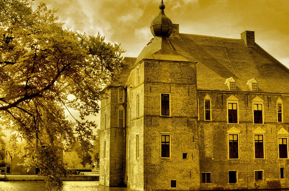 This is a photo made by me of Castle Cannenburgh in Vaassen (Netherlands) that I have given this golden hue with photo editing.