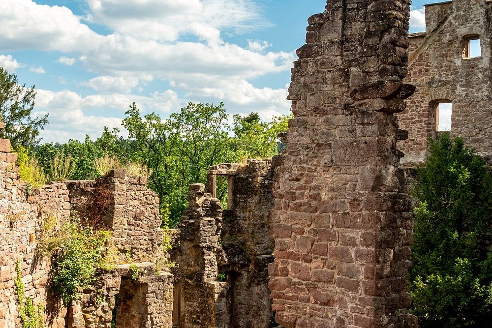 Striking shot of Zavelstein castle with isolated standing walls in summer.