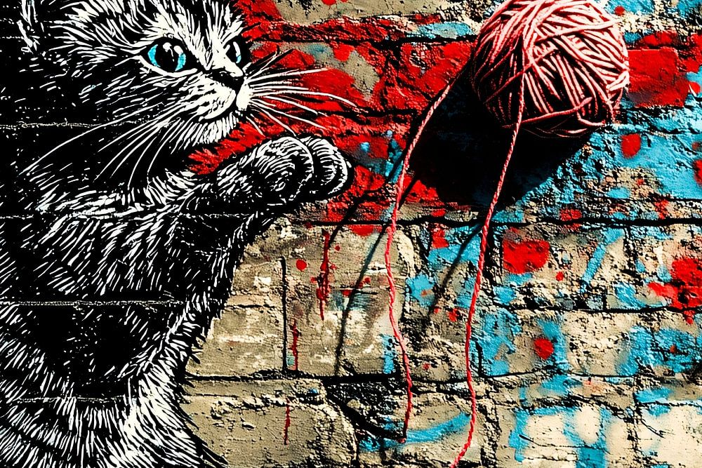 About "Cat with ball of wool graffiti"