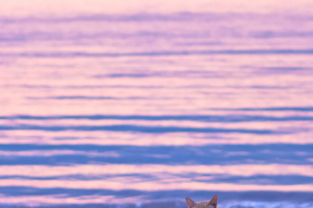 This cat has more eye for the photographer than the sun slowly disappearing into the sea on the left.