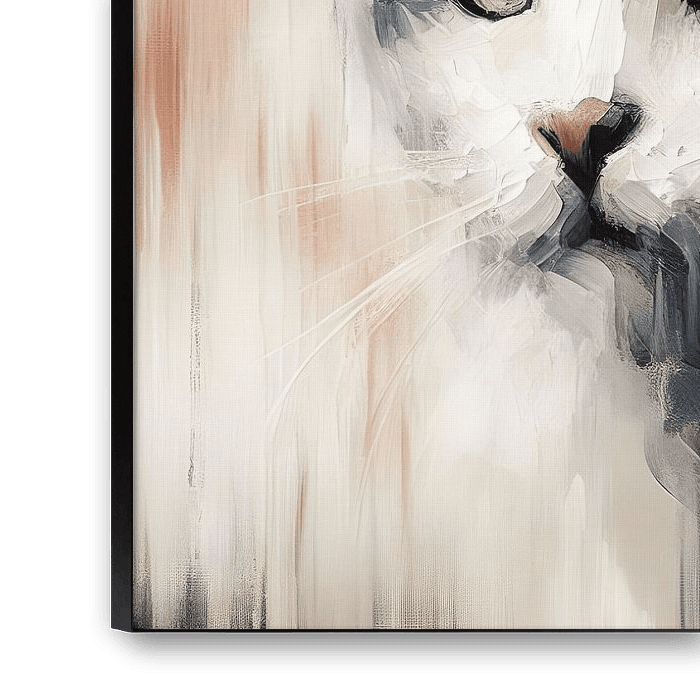 This work in shades of brown captures the essence of a cat in a unique and elegant way. The golden accents emphasise the majestic beauty of the animal, while the warm brown tones create a cosy and familiar atmosphere. The composition, with subtle details, brings the cat to life in a timeless aesthetic. A unique addition to any interior, this work celebrates the charm and mystery of cats with an artistic touch.
