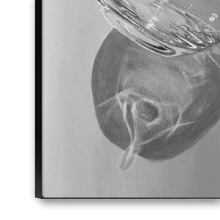 Buy this still life Catch me if you can - photorealistic painting of a glass by QEIMOY on canvas, ArtFrame, poster and wallpaper, printed on demand in high quality