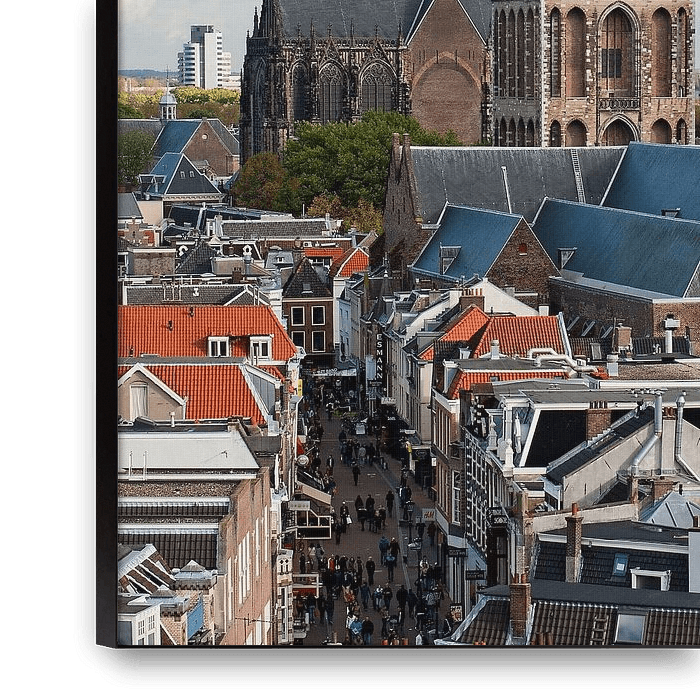 Buy the photo Cathedral tower, Buurkerk and the Steenweg. by Ramon Mosterd on canvas, ArtFrame, poster and wallpaper, printed on demand in high quality.