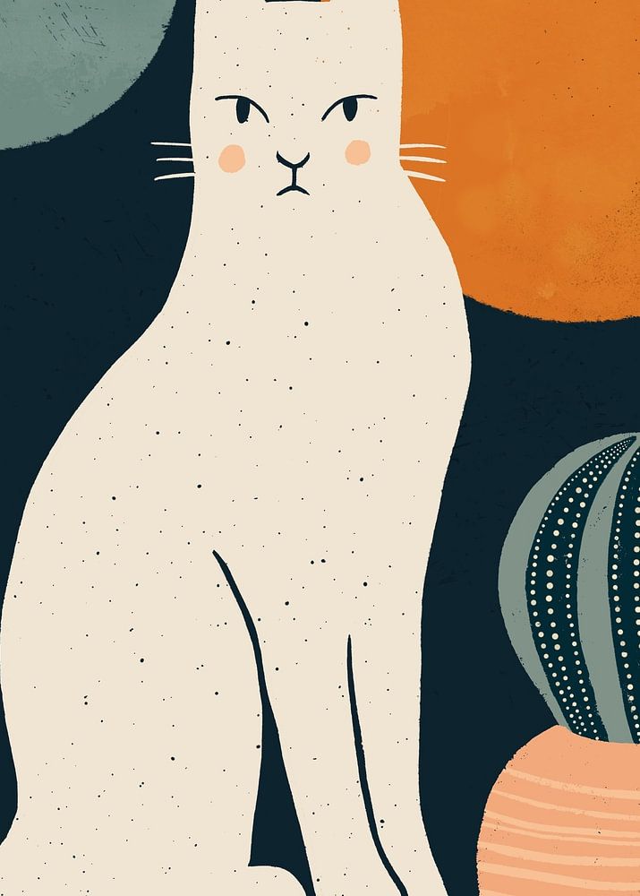 Buy this illustration Cats and Plants 02 by Katarzyna Gąsiorowska on canvas, ArtFrame, poster and wallpaper, printed on demand in high quality.
