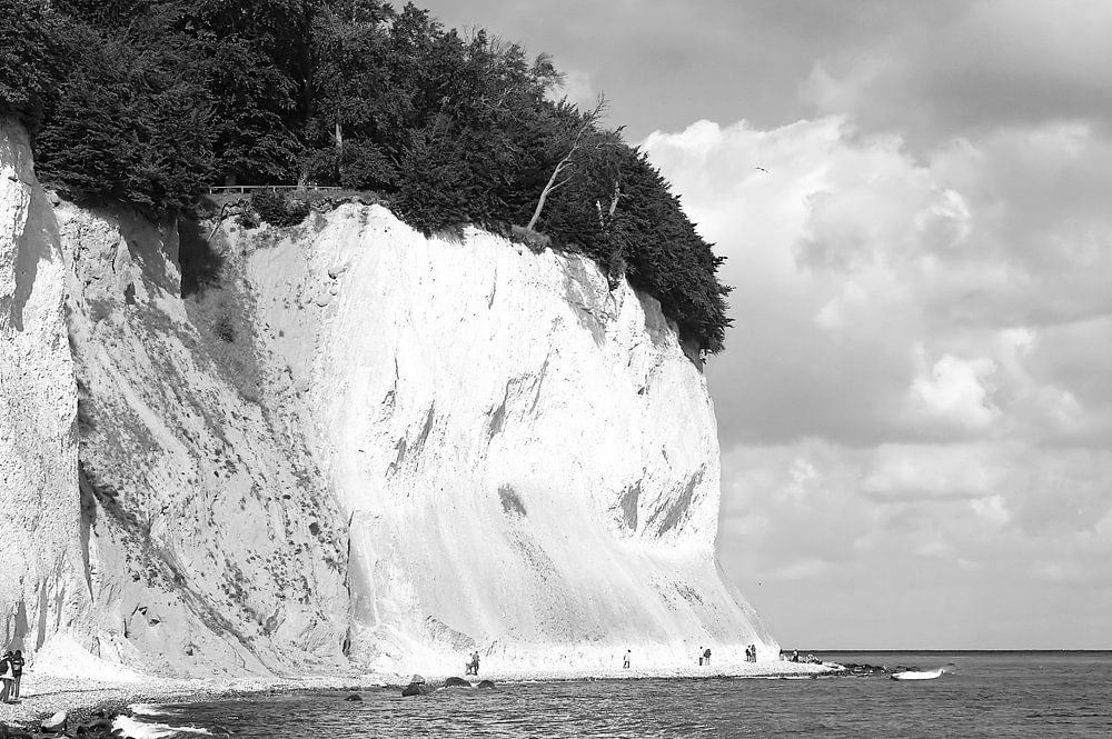 The famous chalk cliffs of the island of Rügen are subject to constant erosion. With every storm, large pieces break from the rocks, and also tear trees and shrubs into the sea.