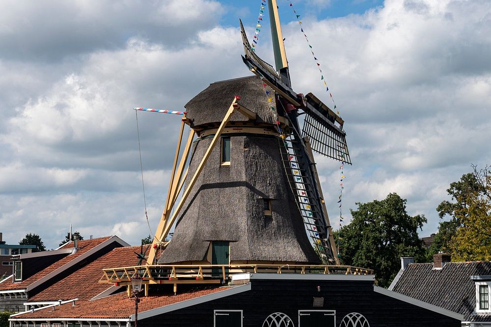 Amsterdam, Netherlands: In Amsterdam North on the Noordhollandsch canal stands the Krijtmolen d'Admiraal. Built in 1792 to grind trass and chalk. The chalk was used to make paint, while the trass was used for cement. Windmill, Summer, Sunny, Day,