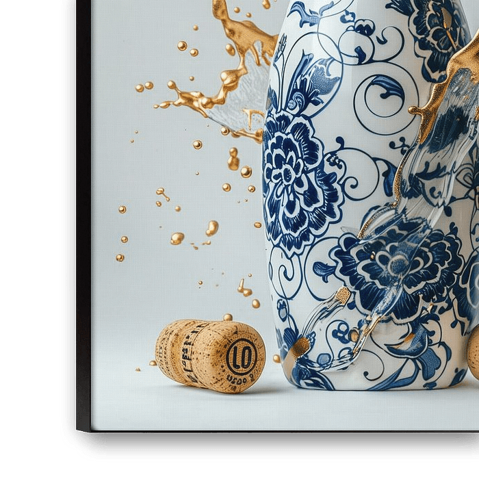A golden moment should be celebrated. Perhaps with a Delft Blue bottle of champagne. In any case, it is festive, this beautiful bottle with golden splashes.