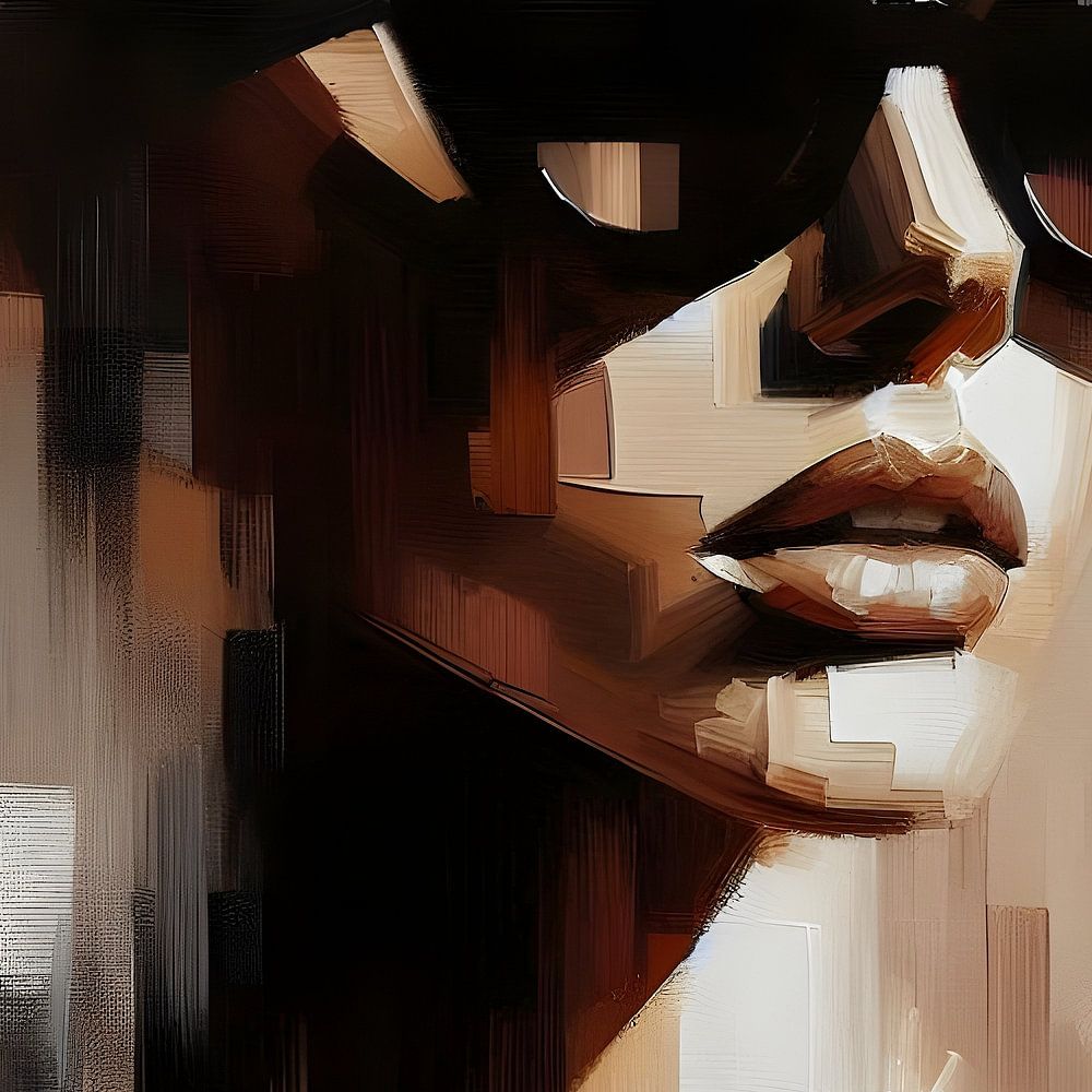Discover an intriguing portrait of a woman wearing sunglasses, cloaked in rich shades of brown and gold. This work, with its masterful brushstrokes and subtle play of light and shadow, exudes an air of mystery and sophistication. The carefully captured details and expressive shadows give the portrait a deep, meaningful feel. Let the warm, luxurious ambience of this work enrich your space with a touch of timeless elegance and style.