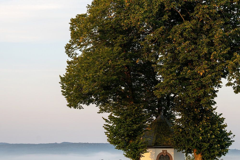 Sunrise over the small chapel near Kapelle bei Lommersdorf in the Ahreifel near Blankenheim Rhineland-Palatinate, Germany