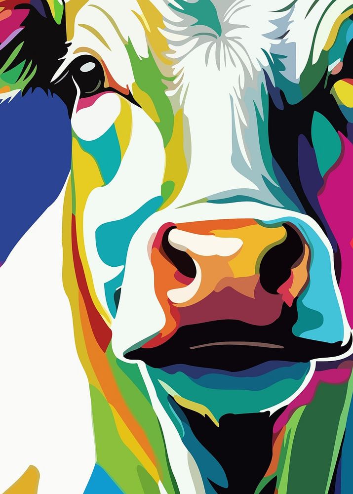 This pop art portrait transforms the Charolais cow, known for its majestic stature and creamy white coat, into a radiant icon of strength and elegance. The robust frame is outlined in crisp, graphic lines, while neon pinks, electric blues, and vibrant oranges replace traditional hues, giving the piece a modern, dynamic presence. Its calm, wise gaze brings balance to the explosive color palette, making it a striking statement for rustic-modern interiors. This artwork is a perfect tribute to rural heritage reimagined with bold, contemporary flair—ideal for anyone who appreciates farm life with an artistic twist.