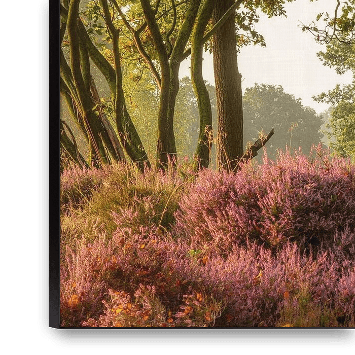 Buy this cow art Charolais cattle in search of green on the purple heather by gooifotograaf on canvas, ArtFrame, poster and wallpaper, printed on demand in high quality.