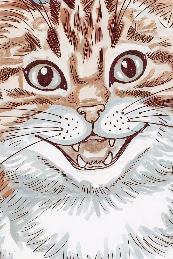 This design shows a playful cat with a happy expression, creating a cheerful atmosphere. The clear blue sky with soft white clouds in the background enhances the playful nature of the cat, who seems to be looking at you with big, friendly eyes. The colour combination of warm browns and cool blues creates a harmonious whole, perfect for a modern or playful space such as an office or children's room. The artwork radiates a positive energy, so it can be a great addition to a space where you would like to create a cheerful and relaxed atmosphere.