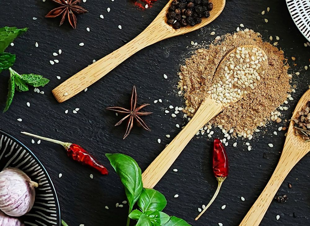 A cheerful and colourful still-life with herbs . Brings a lovely atmosphere in your room , but also very beautiful as a round photo and in your kitchen . Cheerful and colourful still-life that brings a special atmosphere in your house , but also very beautiful in a round form .