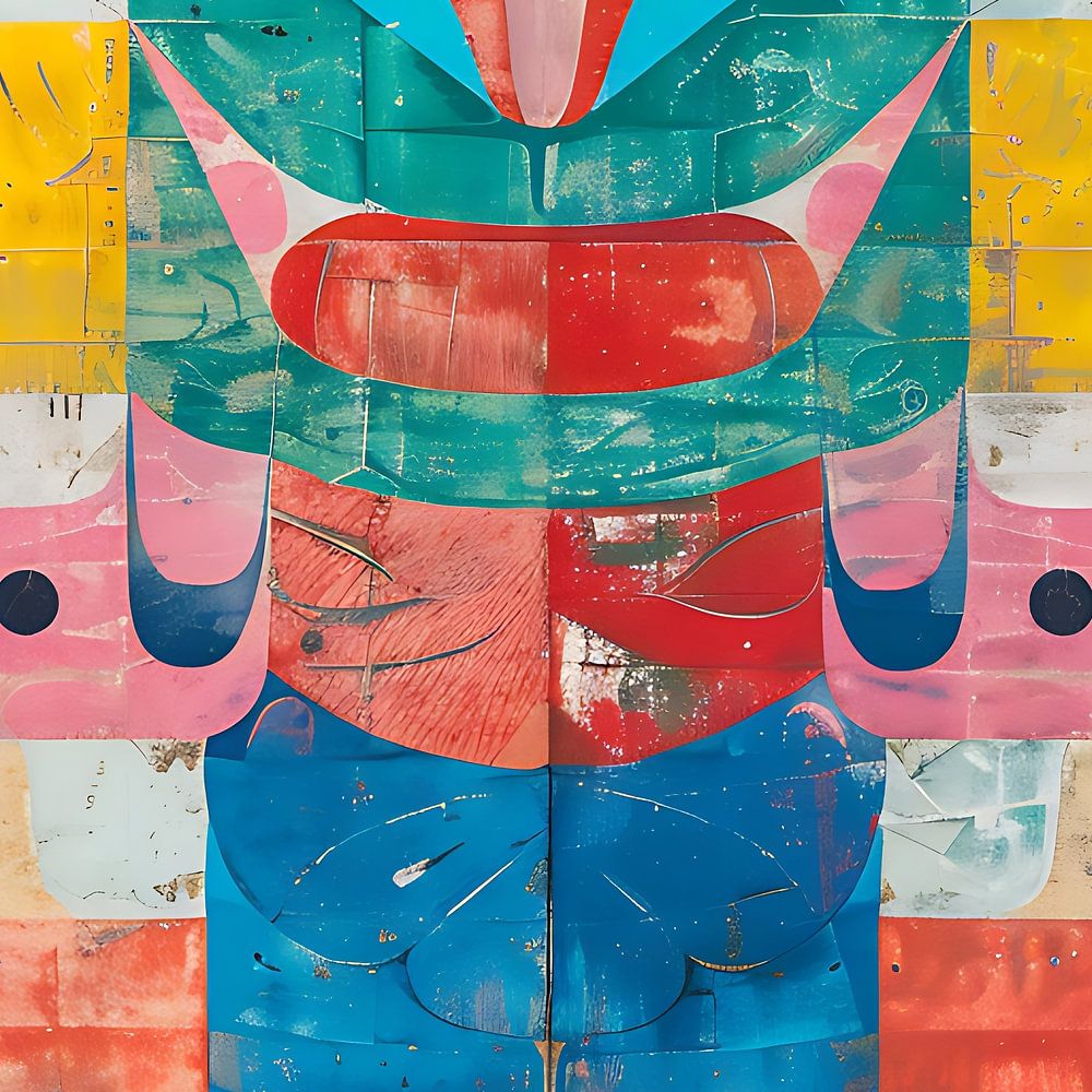 An explosion of colours! Stylish, abstract wall decoration. A totem pole in an expressive colour combination.