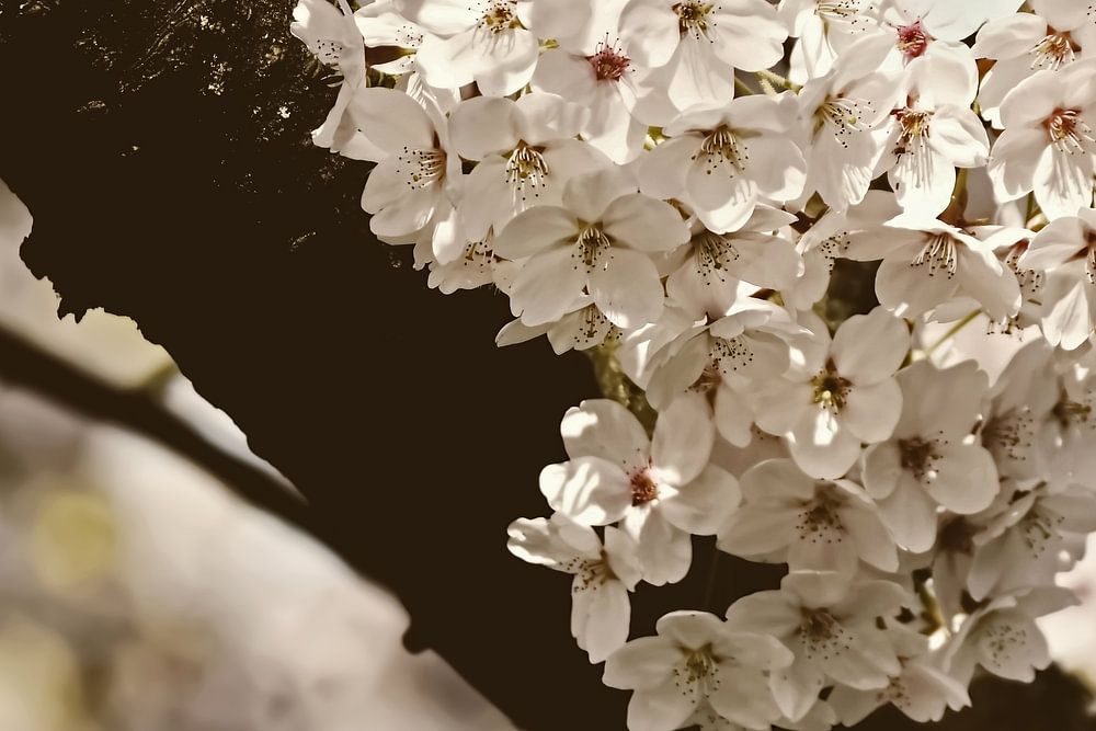 This natural cherry blossom formation has grown along a branch and resembles a heart. It is always amazing how many flowers can grow on a single branch and grow into huge accumulations that produce beautiful motifs. Held in vintage style, they exude a dreamy romantic atmosphere and fit well into any room due to the restrained colors.