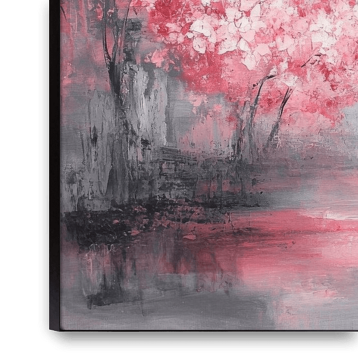 Buy this landscape artwork Cherry blossoms by the lake by Poster Art Shop on canvas, ArtFrame, poster and wallpaper, printed on demand in high quality.