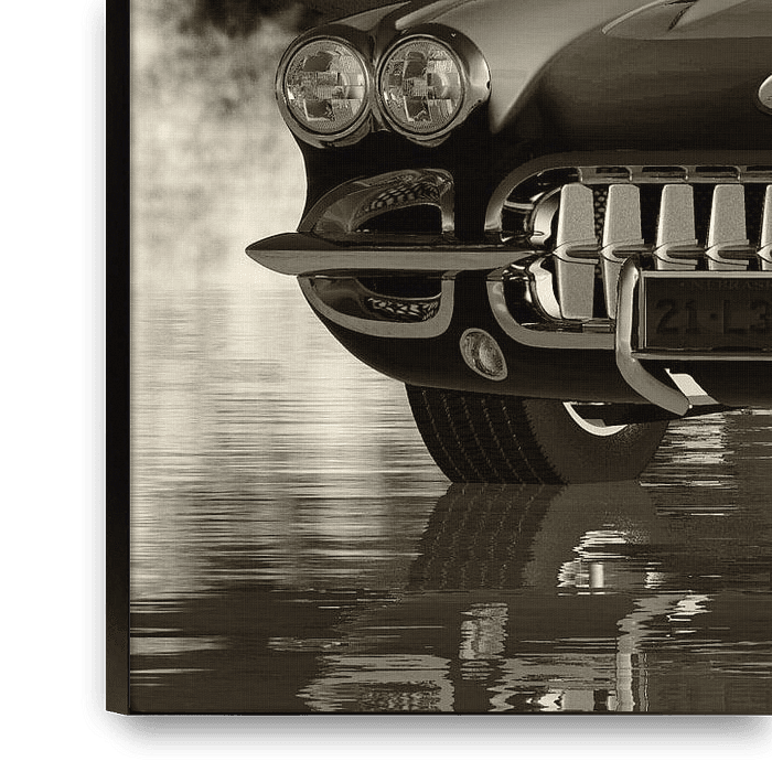 Buy this digital art artwork Chevrolet Corvette C1 The Legendary Sports Car in B&W by Jan Keteleer as a reproduction on canvas, ArtFrame, poster and wallpaper, printed on demand in high quality.