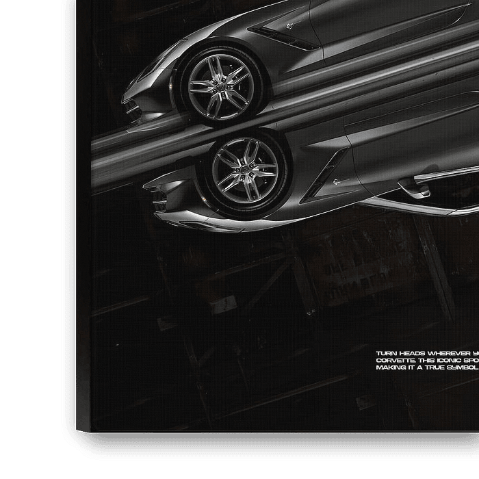 Buy this digital art artwork Chevrolet Corvette Poster by Ali Firdaus as a reproduction on canvas, ArtFrame, poster and wallpaper, printed on demand in high quality.