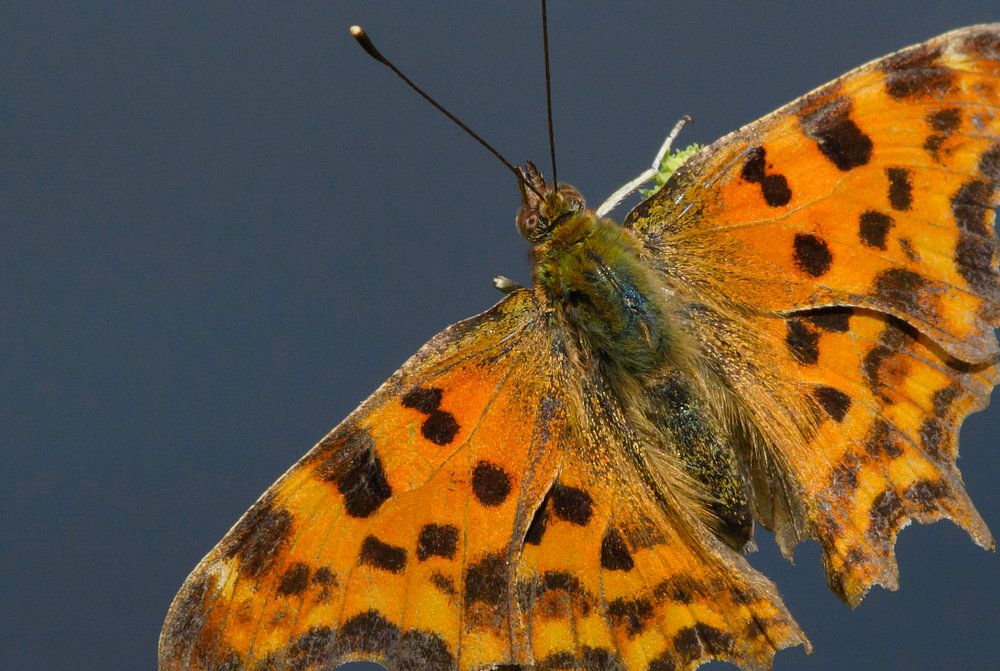 On the tip of a plant sat this beautiful Chickadee Aurelia butterfly