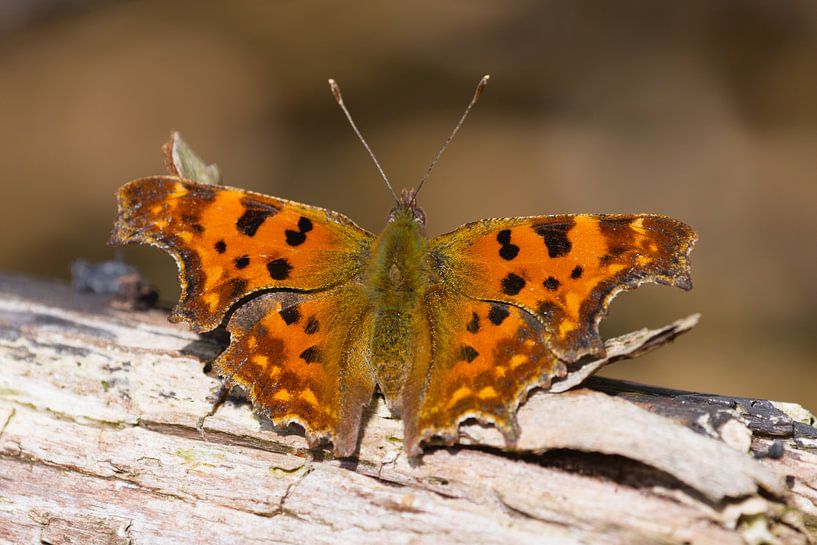 Full in the sun, the beautifully fiery dark red of the cockchafer aurelia stands out beautifully against the sun-bleached branch on which the butterfly is taking a sunbath. What a colour!