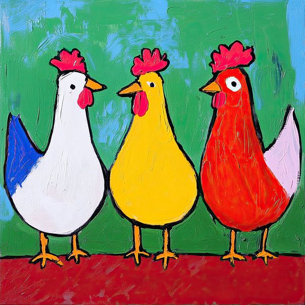 About ‘Chickens Against Green | Three Chickens’ by ARTEO Paintings
