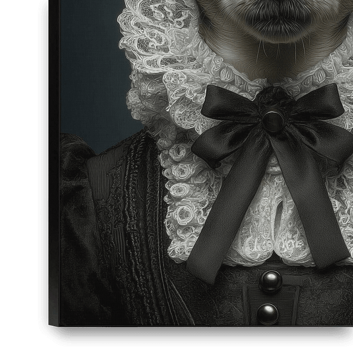 This portrait radiates unwavering loyalty and a sense of duty. The delicate white lace ruff contrasts sharply with the dark robe and emphasises the ceremonial significance of the figure.
