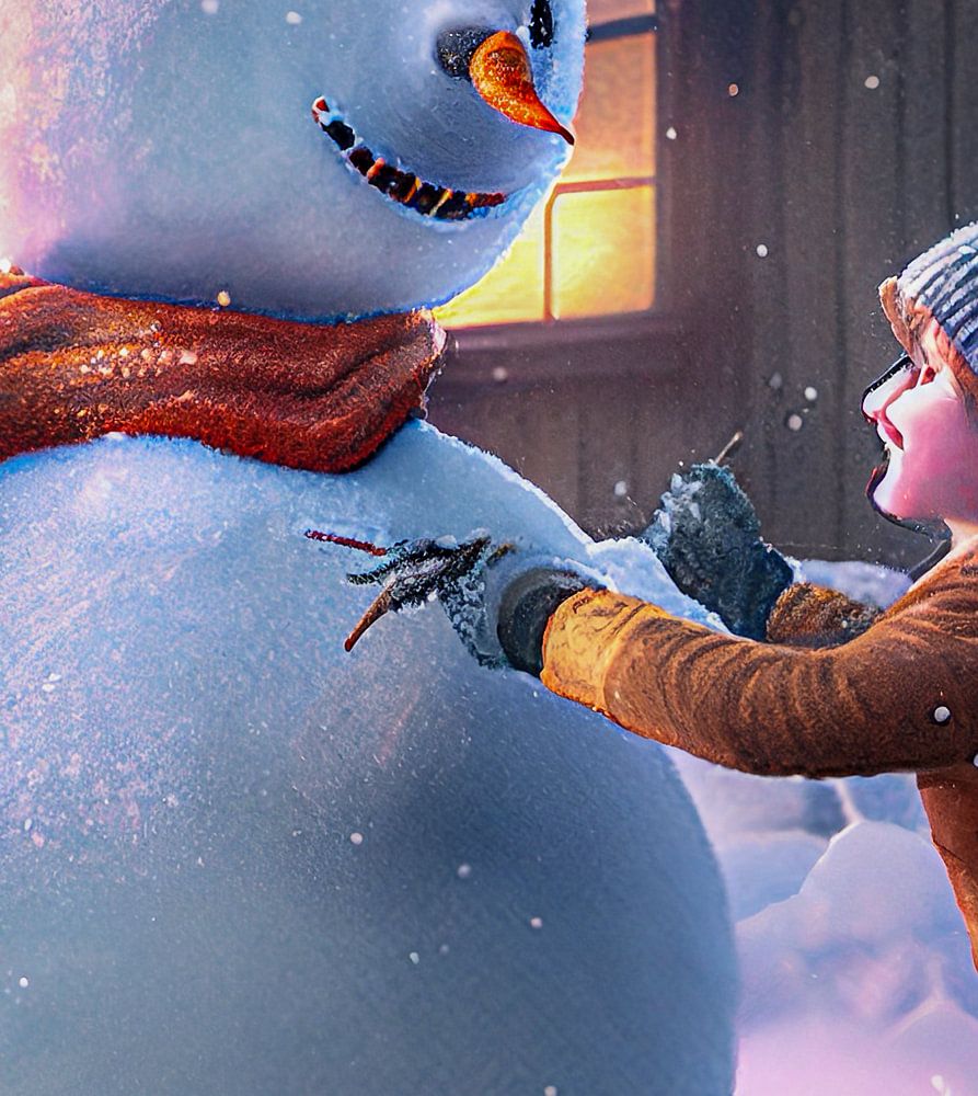 About "Child Building a Snowman Painting Illustration"