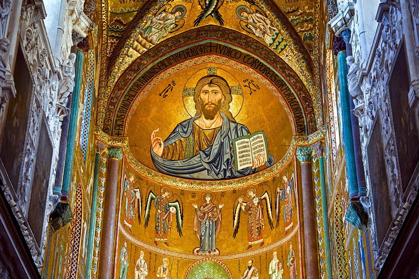 Buy the photo Christ Pantocrator in Cefalù Cathedral by Silva Wischeropp on canvas, ArtFrame, poster and wallpaper, printed on demand in high quality.