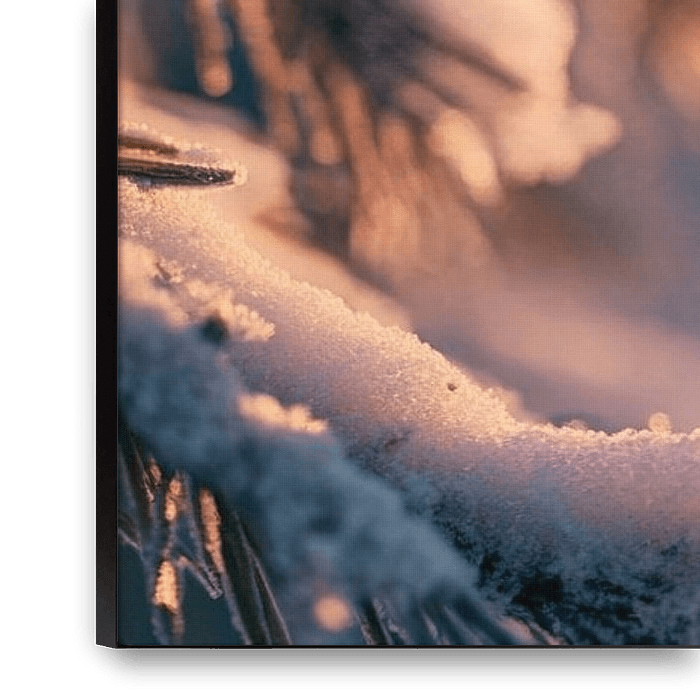 Sparkling Christmas baubles surrounded by glistening snow - a magical winter wonderland that captures the beauty of the cold season. The soft colours and atmospheric lighting create an inviting atmosphere. Ideal for the living room to celebrate festive moments and cosiness.