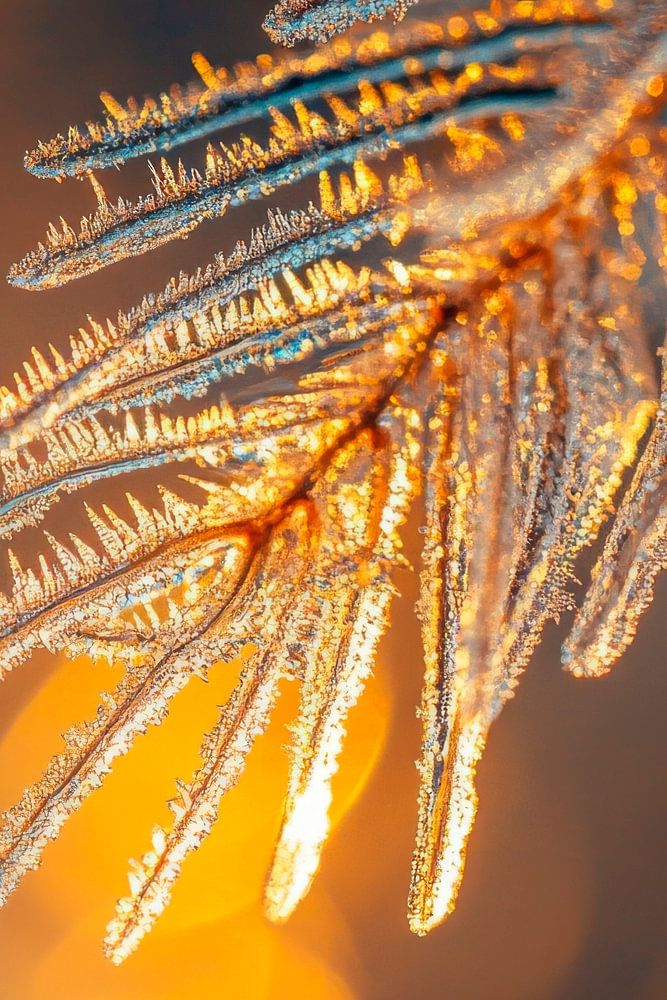 Glittering ice crystals surround delicate pine needles, while soft, golden light streams through the frosty scene. This harmonious combination of cold and warmth has a calming effect and invites contemplation. Ideal for the living room, it creates a cosy atmosphere and is reminiscent of the quiet moments of winter.
